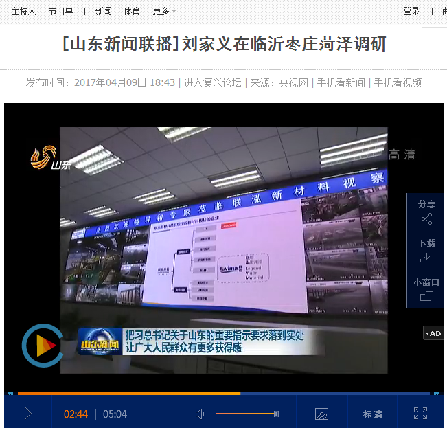 2017年4月7日,,,,,,,,春和景明,,,,,,,,山东省委书记刘家义莅临pa电子游戏新质料有限公司视察。。。。。。。。山东省委常委、秘书长于晓明、枣庄市市委书记李同志、市长李峰、枣庄市委常委秘书长朱国伟、滕州市市委书记邵士官、市长刘文强、pa电子游戏集团董事长郑月明等陪同视察。。。。。。。。