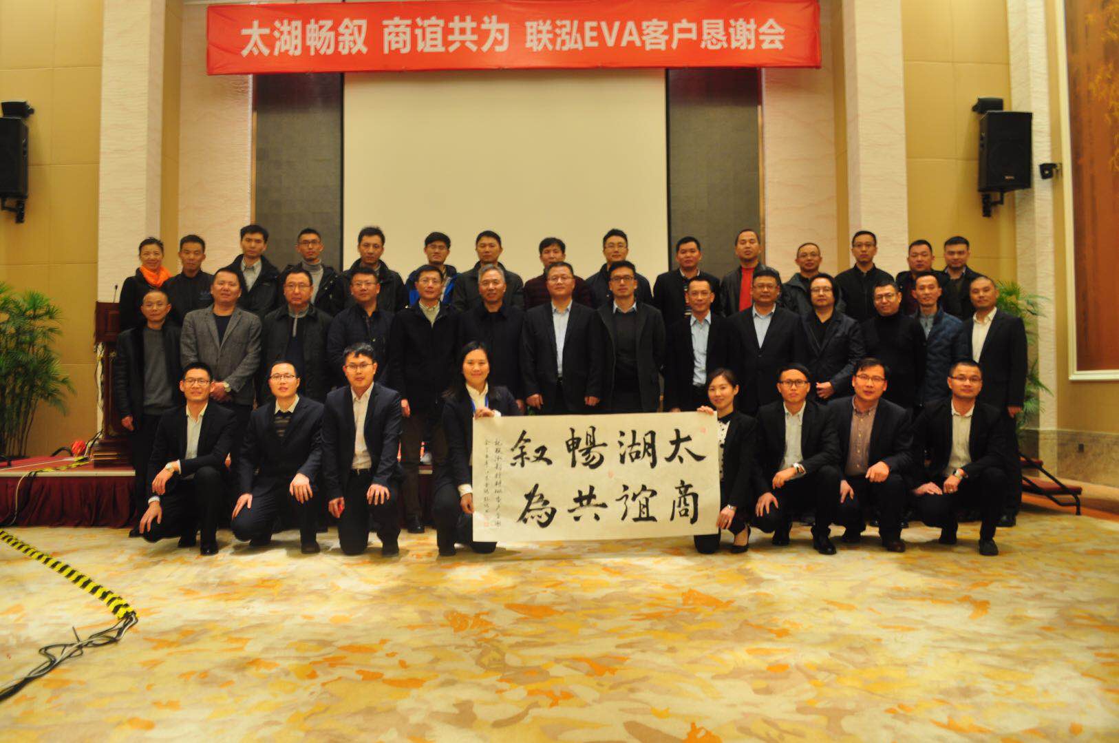 严冬时节,,,,,太湖之畔依然是绿满庭芳、湖光潋滟,,,,,pa电子游戏新质料“太湖畅叙 商谊共为”EVA客户恳谢会于无锡君来湖滨大饭店准期召开,,,,,来自华北、华东、华南三大片区的分销商及终端工厂客户近30余人齐聚太湖之畔,,,,,共叙商谊。。。。。。。。