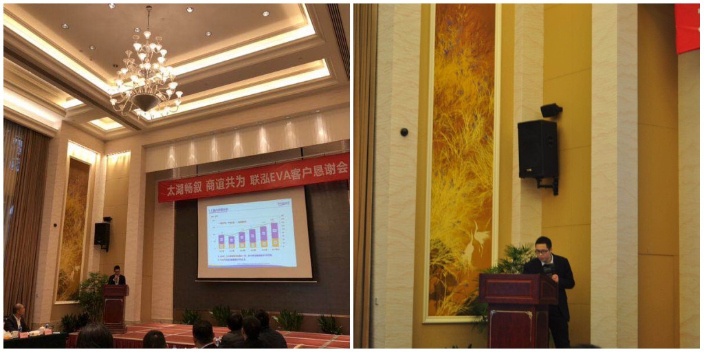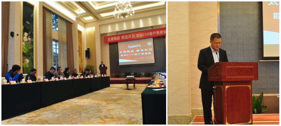 会上,,,,,pa电子游戏新质料助理总裁、销售公司总司理李军致接待辞,,,,,简要叙述了pa电子游戏新质料现在生长现状和2017年主要业绩,,,,,就客户体贴的pa电子游戏2018年EVA产品生长偏向及销售治理等内容作了重点先容。。。。。。。。
