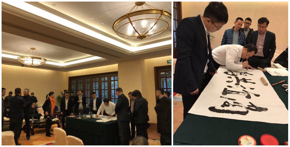 在茶歇的自由交流环节,,,,,特邀而来的pa电子游戏新质料品牌公关部总司理张瑞“即兴挥毫诗藏头,,,,,瞬间泼墨书图画”,,,,,献上了一道道精彩的书法“大餐”,,,,,引得嘉宾驻足围观、啧啧赞美,,,,,争相与墨宝合影。。。。。。。。