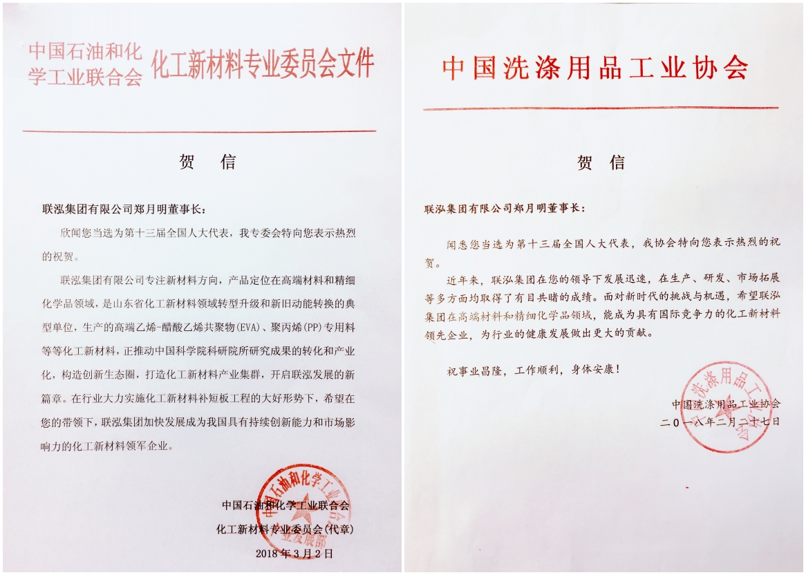 两大行业协会发来贺信